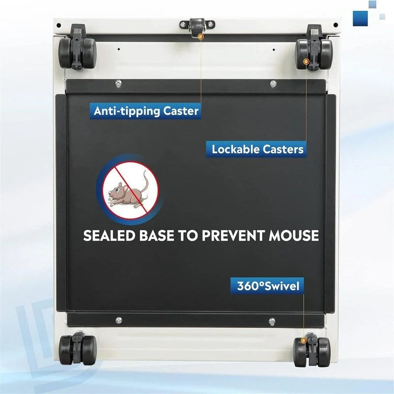 - This mobile file cabinet arrives with five casters, including two front casters with braking function and one center caster to prevent tipping