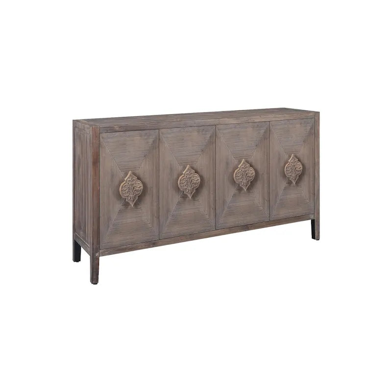 Carved Flower Door Handle, Antique Four Door Cabinet