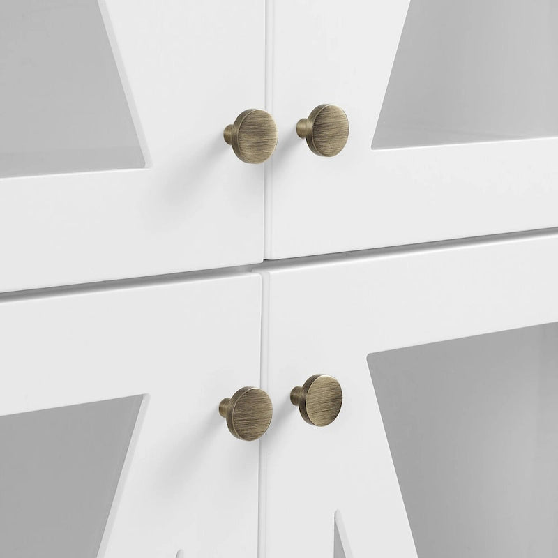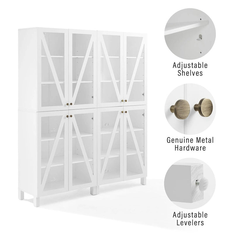 The Cassai 2pc Storage Pantry Set delivers stylish storage for any room. Great for organizing books or displaying keepsakes, this set makes a stunning bookcase or curio. Comprised of two tall cabinets with adjustable shelves, the glass doors showcase beautiful X accents for an upscale modern farmhouse look.