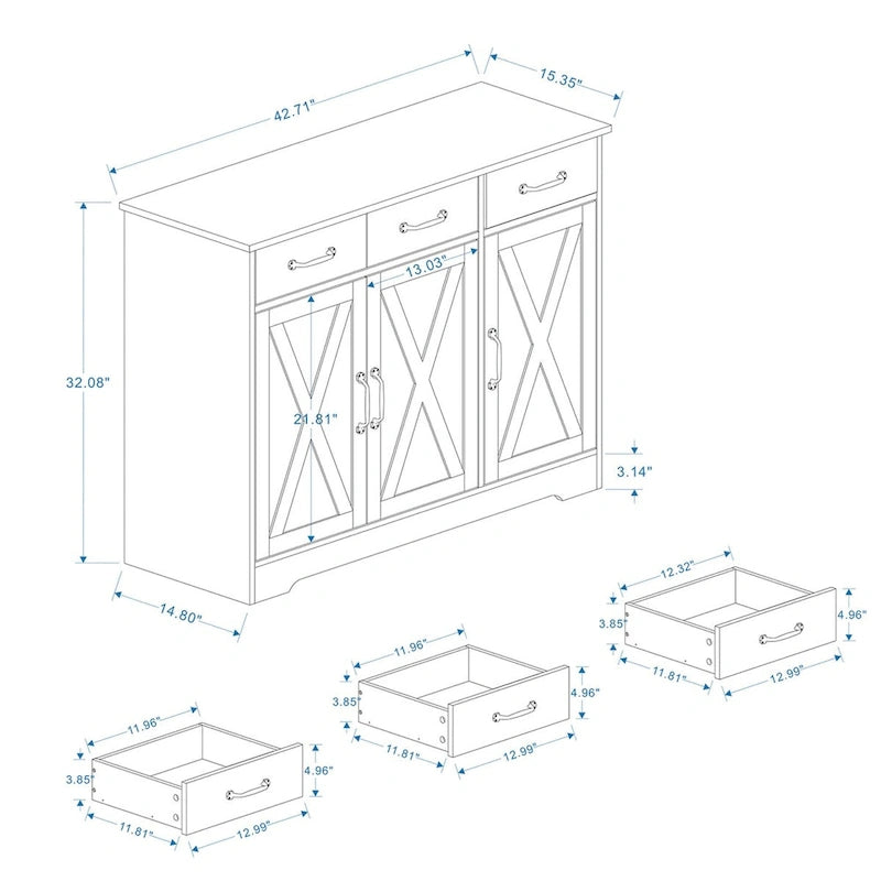 Farmhouse Buffet Cabinet Storage Sideboard with 3 Drawers and 3 Doors