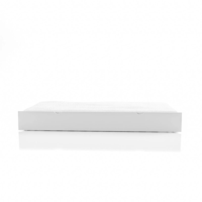 Help your kids host fun sleepovers with this Hily trundle from Furniture of America. The twin-size frame fits under a bunk bed, so you can pull it out to welcome an overnight guest. With its antique-finished front panel, this trundle blends into the bed frame between uses. Cut-out handles serve in place of hardware, making it easy to slide this trundle bed out for use as it's supported on wheels. This piece comes in two different color finish options including antique grey and antique white. This makes it a versatile wood twin size trundle to fit with many different types of youth bedroom themes.