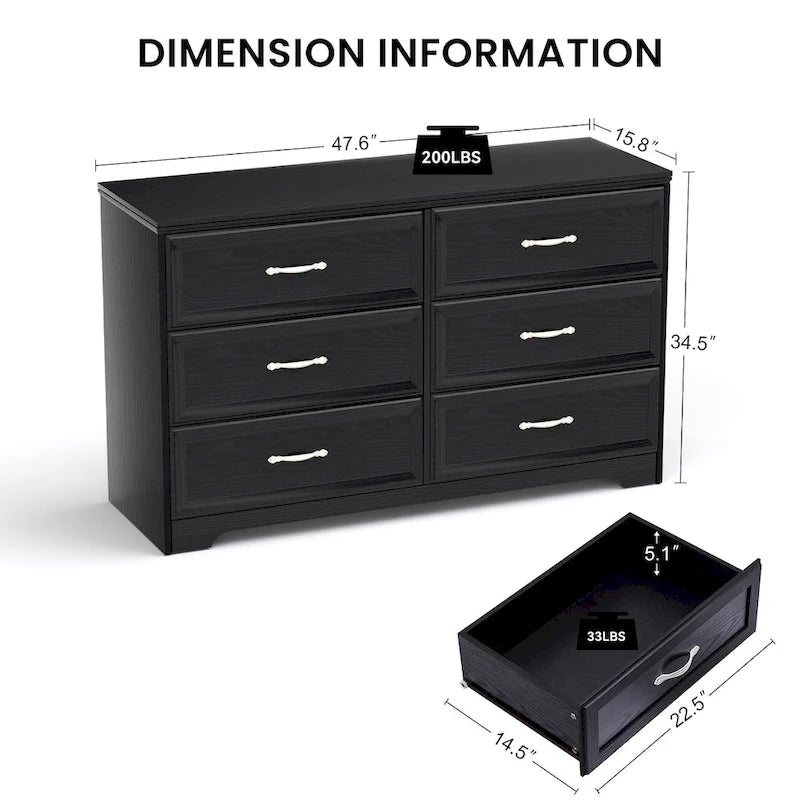 PLENTY OF STORAGE SPACE: There are 6 drawers, perfect for organising clothes, scarves, socks, cosmetics and other items. The top can hold table lamps, clocks, books, vases and more.