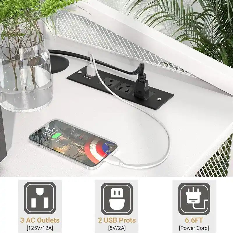 - This file cabinet has a more rational and user-friendly design. The file cabinet is built in 2 power outlets and 3 USB charging ports for your printer, paper shredder, scanner, phone, headset, tablet, and other office's electric equipment which provides great convenience to your work when you are using them. This is a real combination of stylish and functional. The modern printer stand holder gives a charming and elegant look.