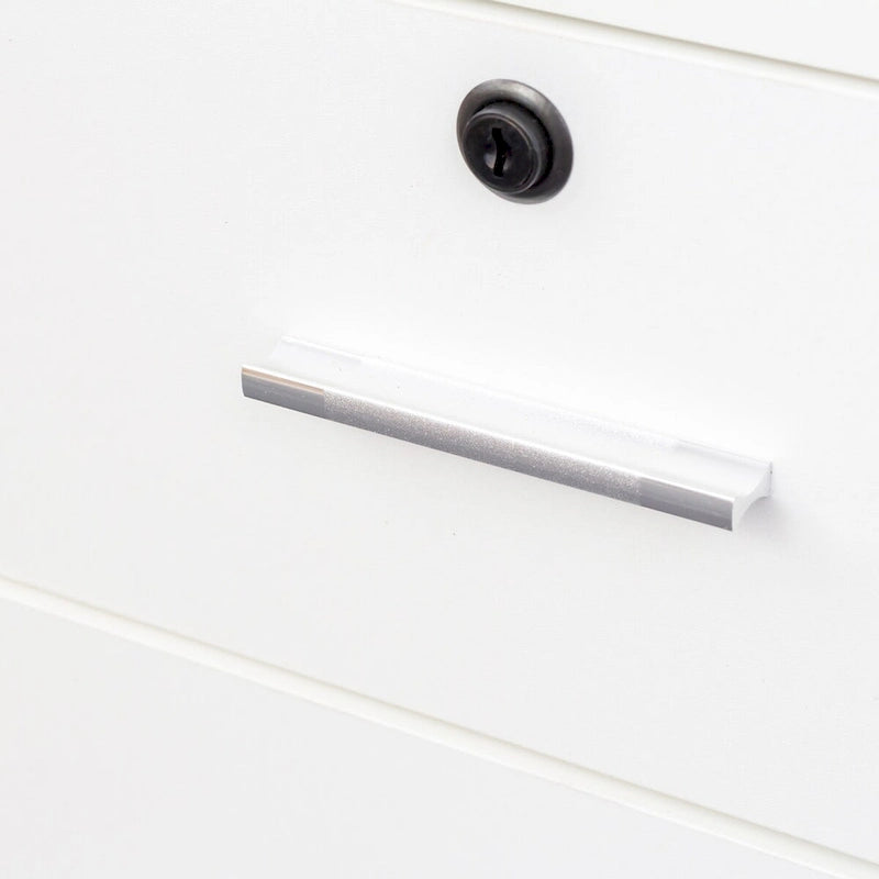 - One enclosed drawers and a large cabinet add storage space for a variety of items and remove clutter from the desk