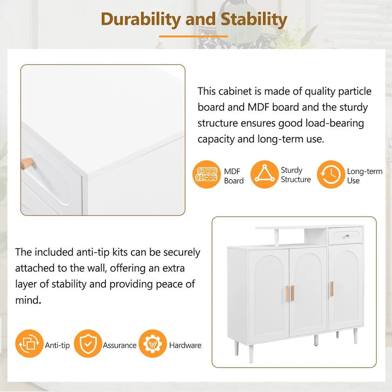 Shoe Cabinet with Arched Doors and Drawer,Cream Style Storage Sideboard with Adjustable Shelves and Solid Wood Legs