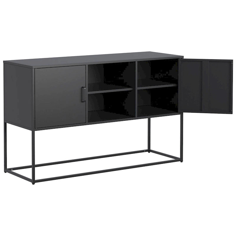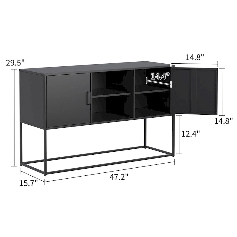 The Modern Sideboard Buffet Cabinet is the perfect solution for stylish and efficient storage. It features a spacious design, durable construction, eco-friendly finish, versatile use, easy maintenance, enhanced safety, and elegant features. Made from high-strength cold-rolled steel, this cabinet ensures the highest quality and durability.