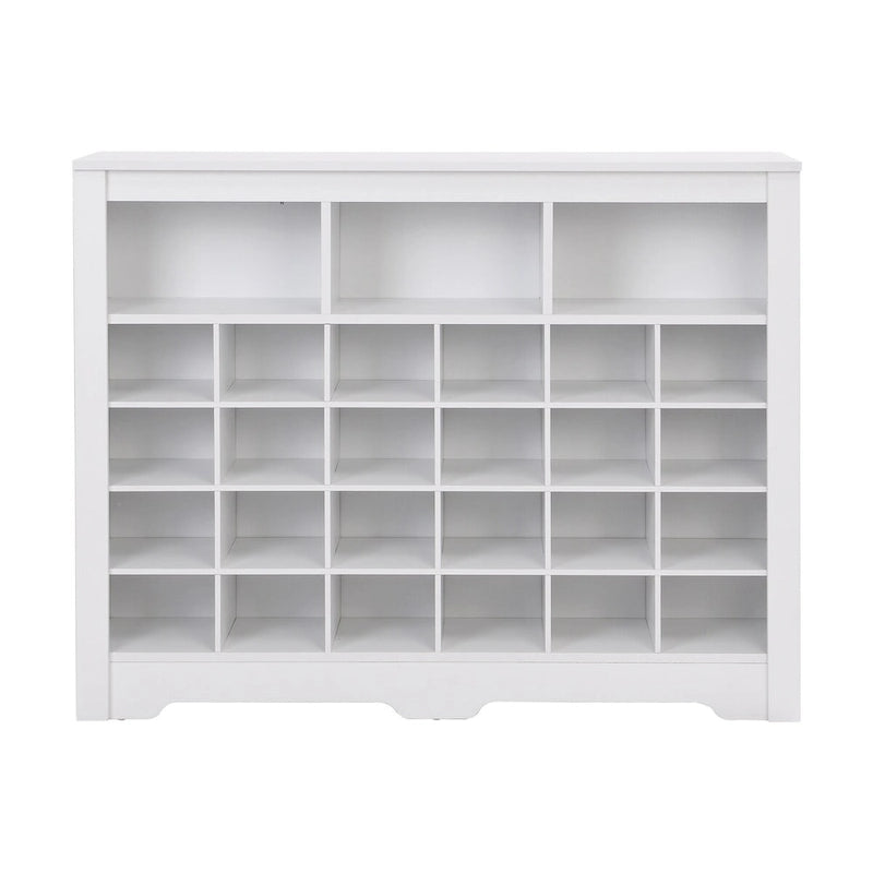 - The cabinet is divided into 24 small cubbies, each designed to hold a single pair of shoes, ensuring that your shoes are neatly organized and easily accessible.