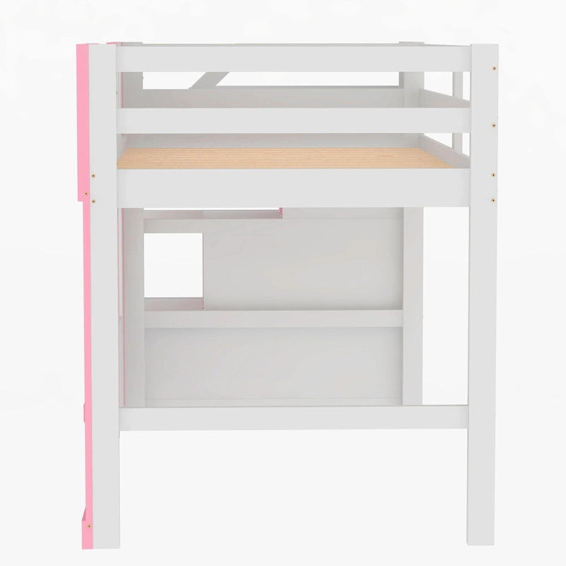 - Sturdy Wood Frame: The twin size loft bed is constructed with a sturdy pinewood frame that features a natural wood grain look for enhanced stability and durability.