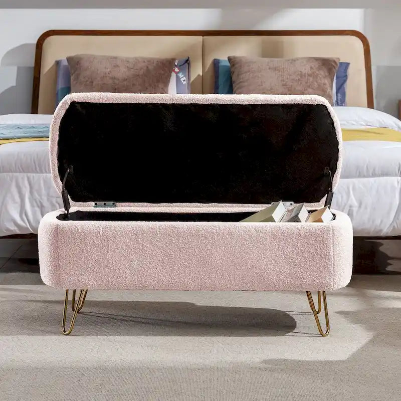 The storage bench can be used for sitting and storage, and can be placed at the end of the bed or next to the shoe cabinet. It has convenient and practical functions, and has a beautiful and lovely appearance.In terms of material, we chose Faux Fur. Faux Fur can make the whole bench look fuller and also increase the comfort of the bench.