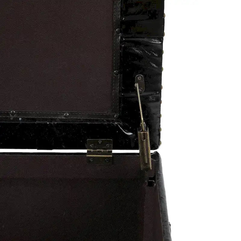 - The faux leather upholstery has a stylish nail trim accent.
