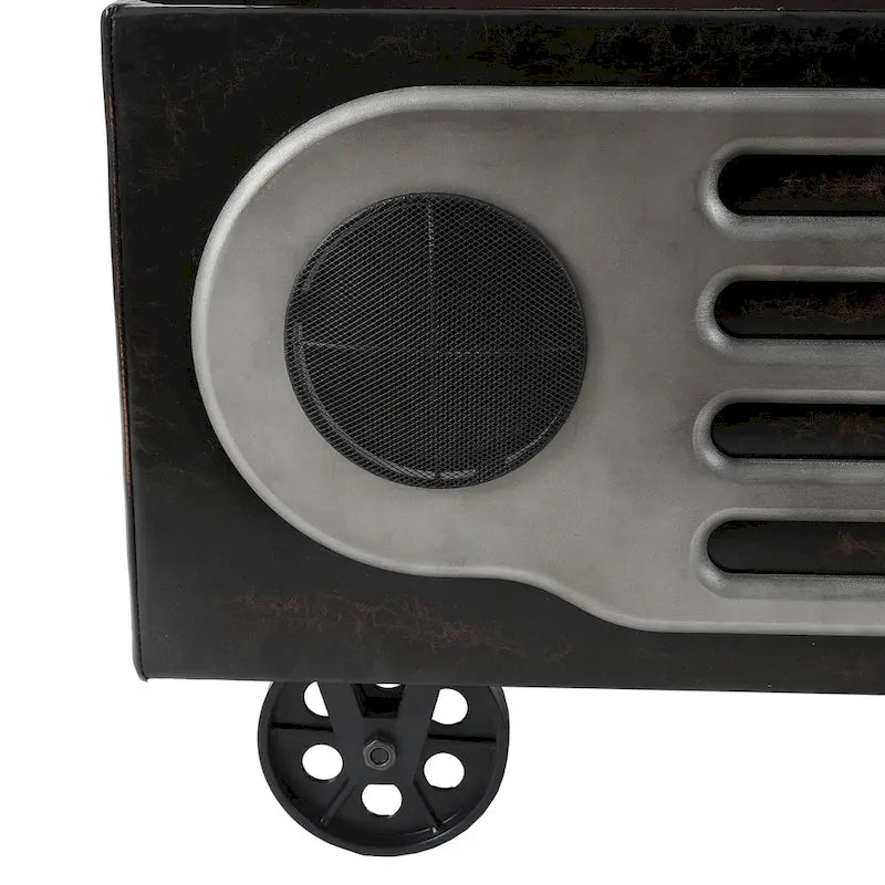 Introducing an industrial and modern bench that can give a relaxed and contemporary style to your home interior. This bench features a retro style speaker front, making it an upbeat accent piece for an invigorating update to your modern home or apartment. Hidden storage ensures ample space for your items. The bench is fully upholstered in faux (PU) leather with dense padding, giving it a mannered vibe that can help you redesign your home and offers superior comfort to relax your body and mind. The base of the bench has stationary wheels that give it an industrial flair, but the trunk will stay in place.