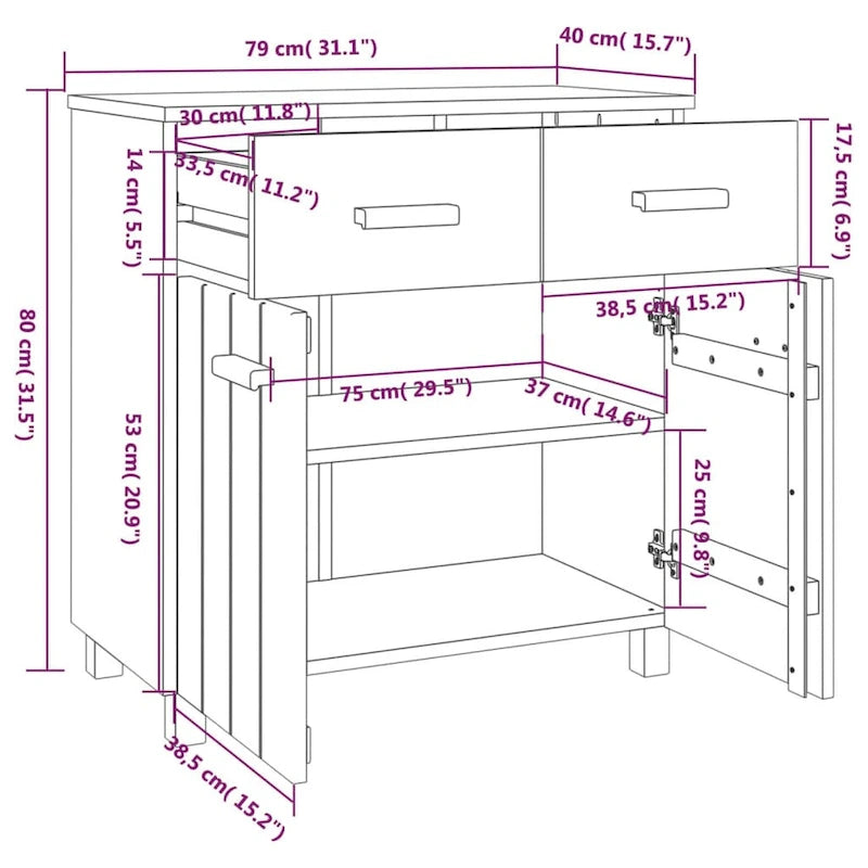 vidaXL Sideboard Buffet Console Cabinet with Storage HAMAR Solid Wood Pine - 31.1x15.7x31.5
